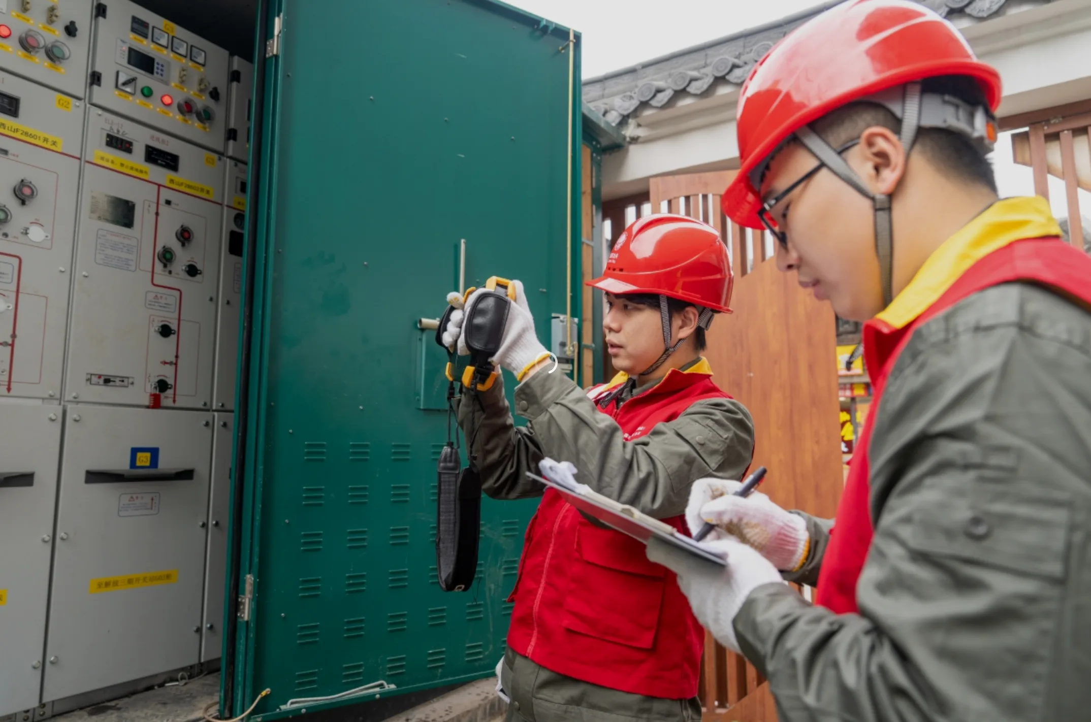 2月19日(农历大年初三)上午8点,在忠义街历史文化街区,一位身穿红马甲、头戴安全帽的年轻人格外醒目。他是“00后”电力员工温从辉,正手持红外测温仪,与同事一起对沿街配电设备进行细致检查。“春节巡检必须格外仔细,我们要保证每一处设备都正常运行,让大家亮亮堂堂过新年。”温从辉一边记录数据,一边认真地说。
