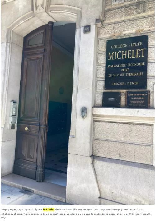 尼斯米什莱高中法国最早开设专门接收高智商儿童的初中课程的中学之一。(图片来源:France3报道截图)