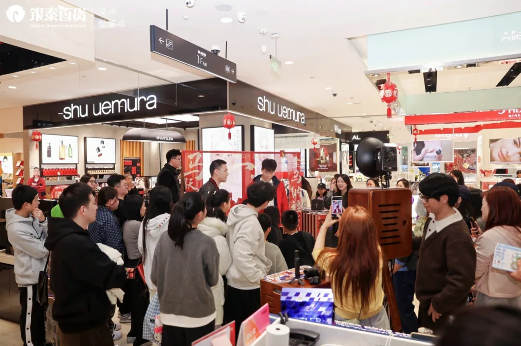 五马-大南商圈作为温州传统的商业核心,这个春节依然是摩肩接踵、人声鼎沸。银泰百货(温州世贸店)精心策划的“新春民俗荟”从初二到初五好戏连台:“剪彩为春”剪纸活动,让市民在方寸红纸间剪出新春祝福;“新春送福袋”传递吉祥惊喜;非遗糖画师傅以勺为笔、以糖为墨,为孩子们勾勒出甜蜜的童年记忆;初五迎财神,财神爷三个时段准点派送刮刮乐,为消费者送上开年好运。