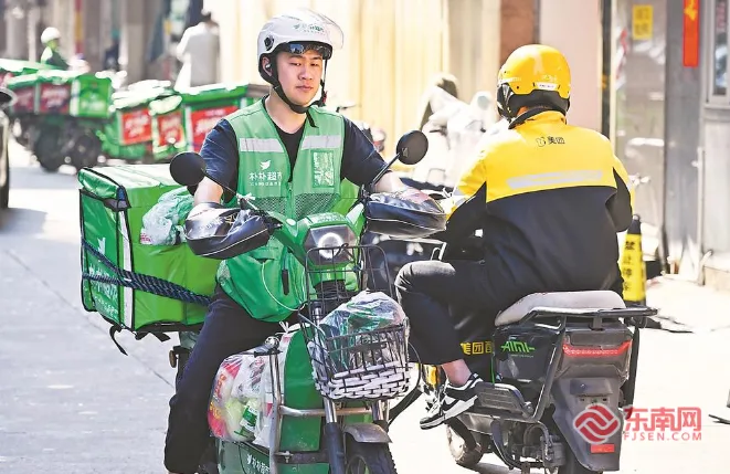 2月16日,福州各超巿送菜员和外卖送餐员为市民的围炉贺岁而奔波。福建日报记者 游庆辉 摄