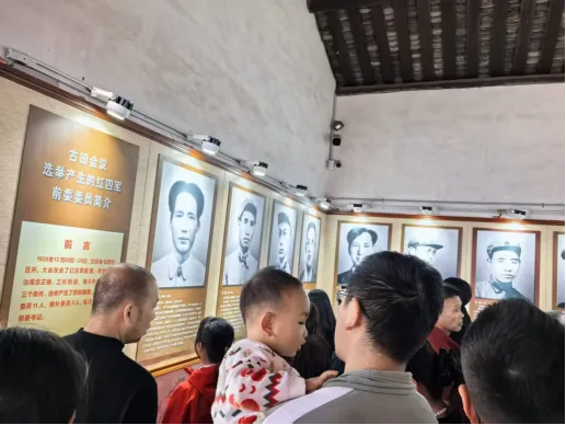 古田会址熙攘人群在参观