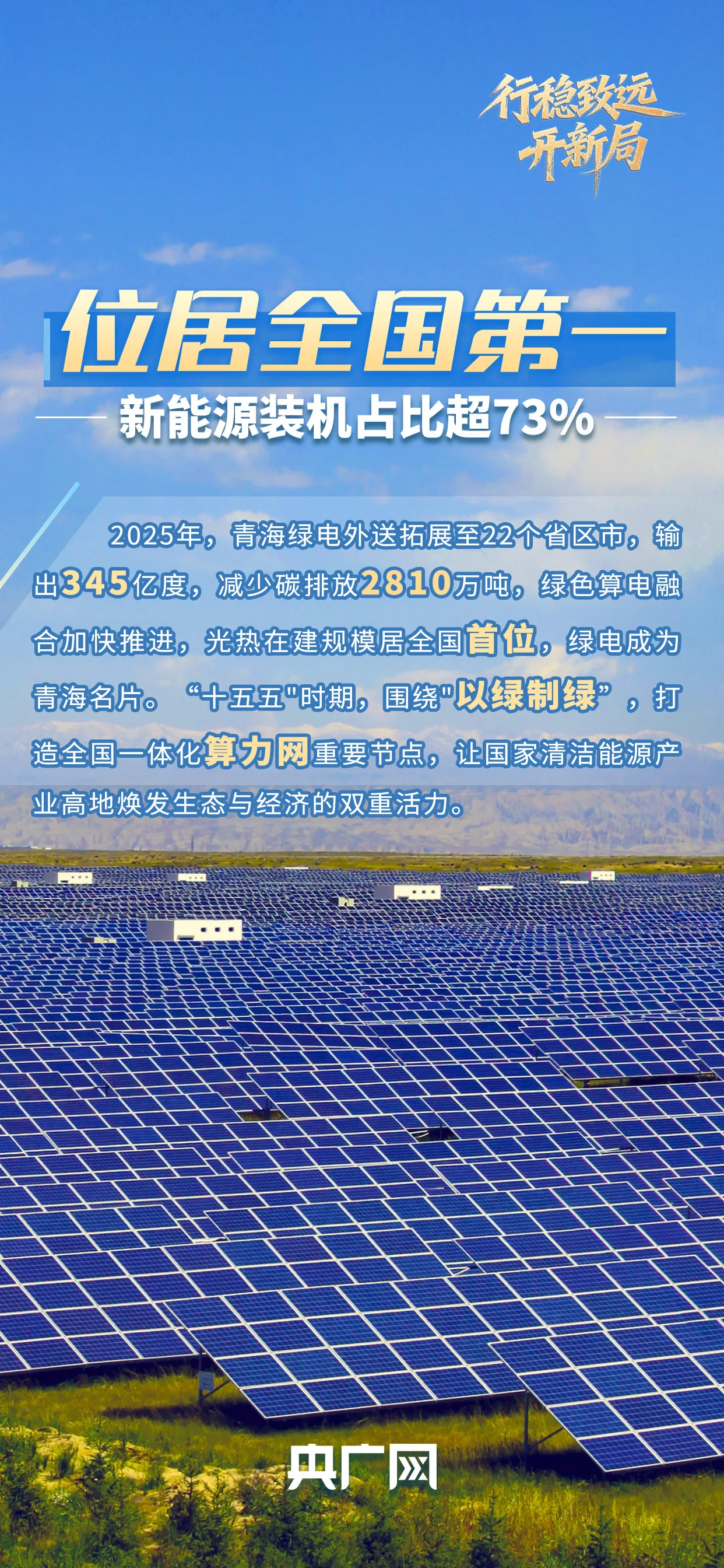 这片孕育了三江之源的雪域高原,始终坚守“生态优先、绿色发展”的初心底色。牧光共生的荒滩蝶变、绿电算联的数字崛起、青绿兴农的好物远行,三条发展脉络紧密交织,串联起青海独具高原特色的绿色发展之路。