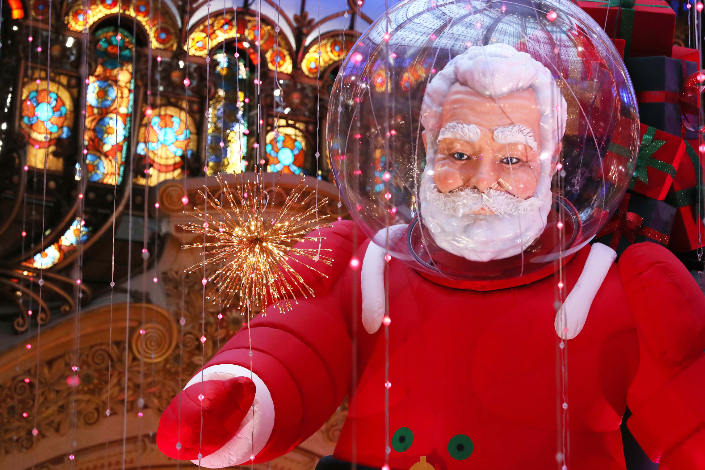 在法国巴黎老佛爷百货商场拍摄的“圣诞老人”。