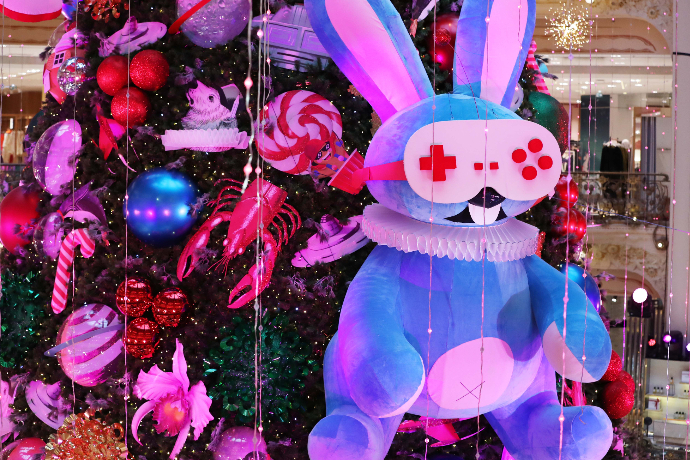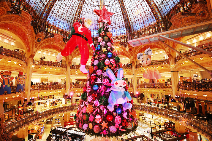 在法国巴黎老佛爷百货商场拍摄的巨型圣诞树。