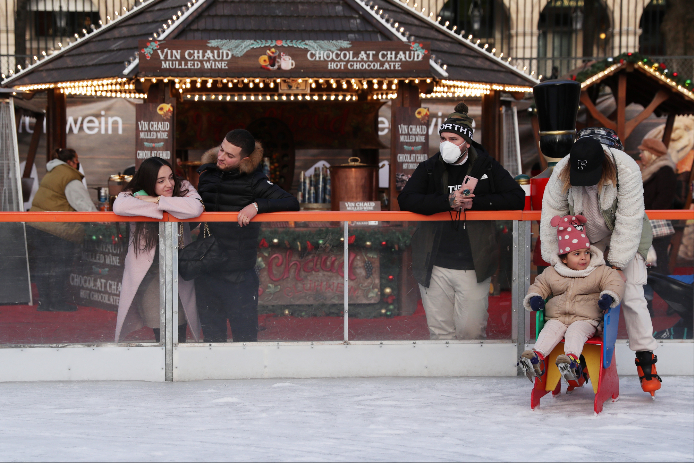 12月9日,人们在法国巴黎杜伊勒里花园的圣诞市场溜冰。