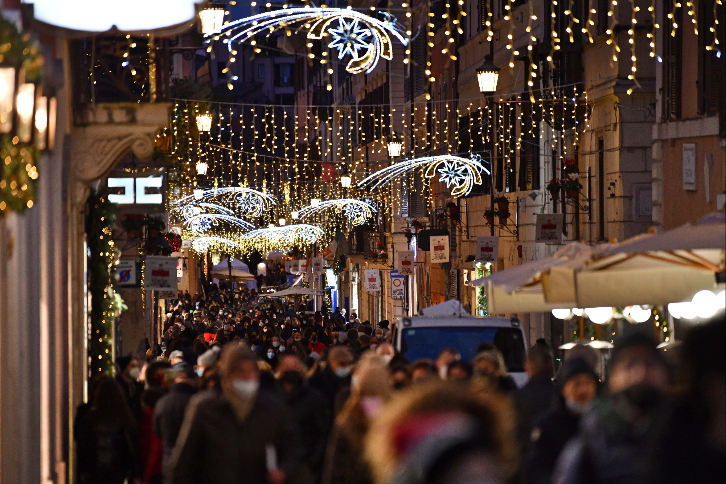 12月11日,意大利罗马的孔多蒂商业街被节日彩灯装点。