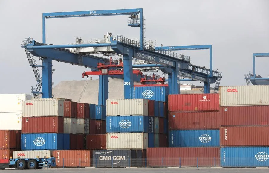 这是2025年12月2日拍摄的摆放在秘鲁钱凯港码头的集装箱。新华社发(玛丽安娜·巴索摄)