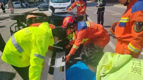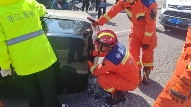乐清:争分夺秒!消防员十分钟成功救援车祸被困老人