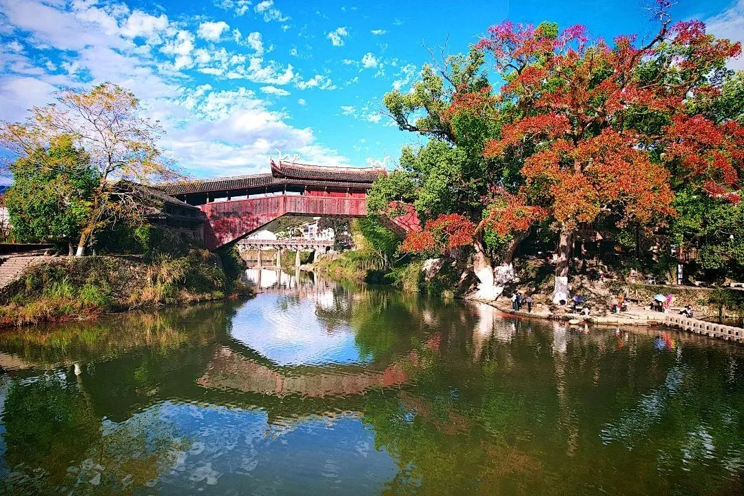 被誉为“世界最美廊桥”的北涧桥横跨北溪,溪水两岸,沿道路分布着约300米长的廊桥市集,它是新近公布的浙江首批重点培育共富市集之一。