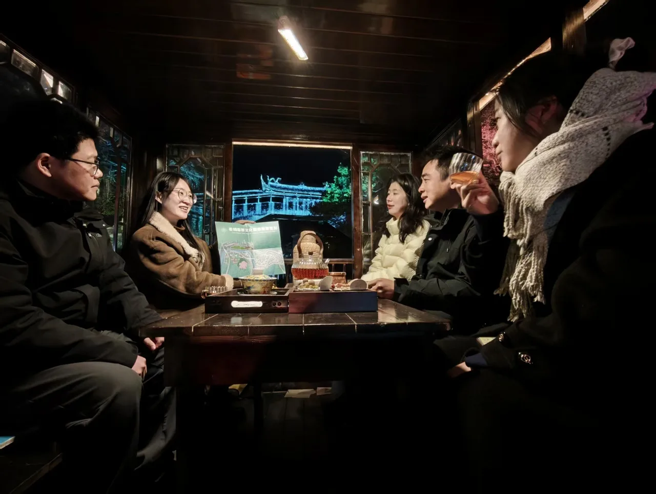 “好戏在后头。一会儿我们还要坐船游览,大家可以近距离打卡廊桥夜景!”林怡静的一番介绍,再次勾起了客人们的兴致。