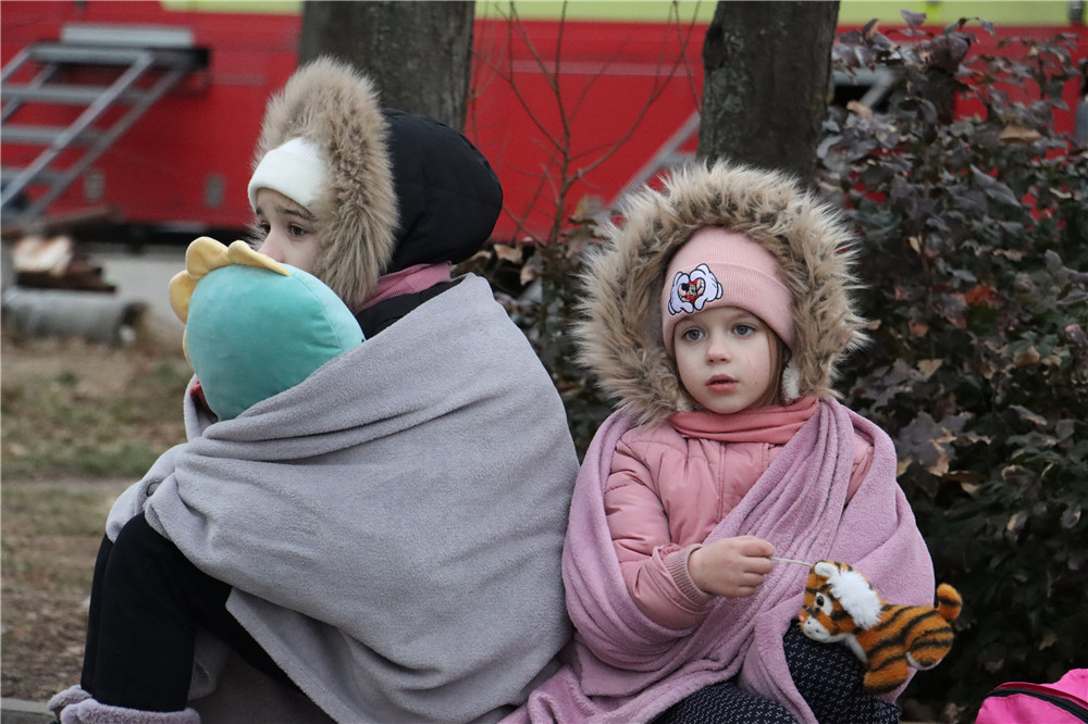 这是2月27日在罗马尼亚北部与乌克兰接壤的锡雷特拍摄的乌克兰儿童。(图片来源:新华社)