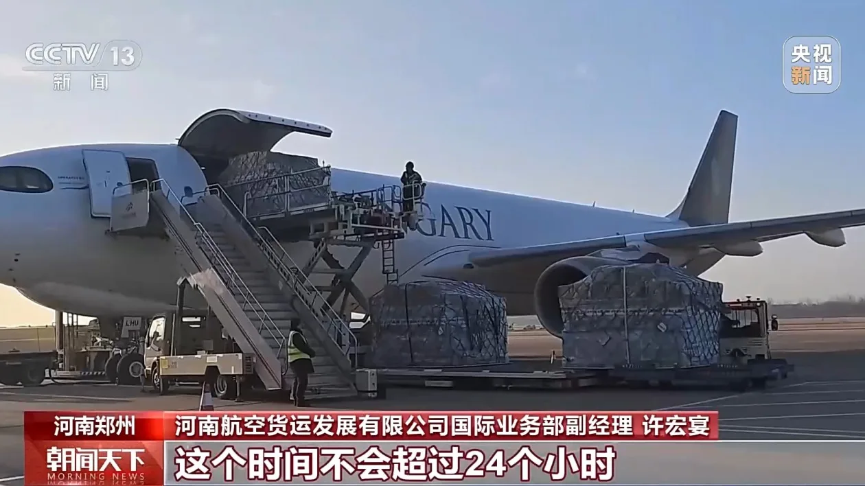 河南航空货运发展有限公司国际业务部副经理 许宏宴:就以时效性要求比较高的跨境电商货物、电子产品来讲,货物从到达机场货站,直至装上飞机起飞,这个时间不会超过24个小时。对于这类时效性要求比较高的货物来说,货量还是维持在一个比较平稳的状态。