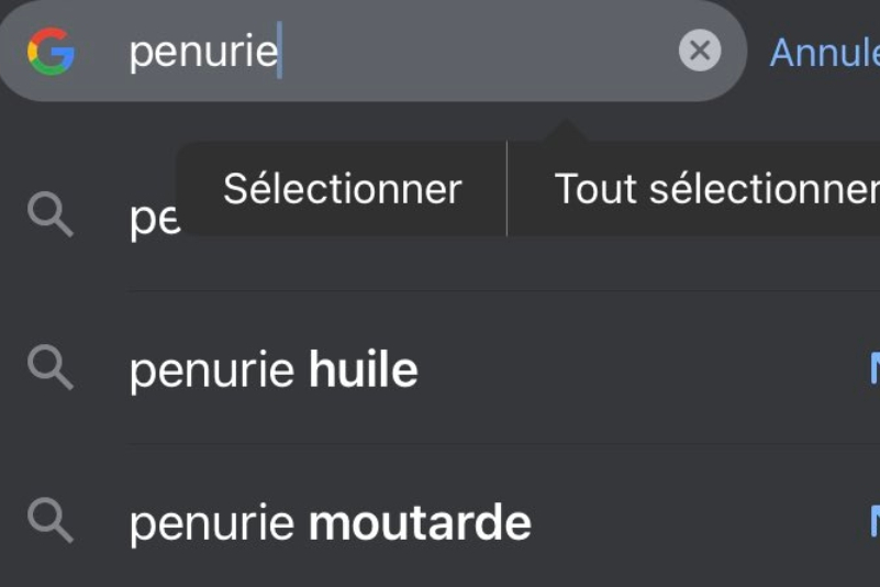 法语搜索“缺货”,第二个出现的联想词就是“芥末酱”。(图片来源:网页截图)