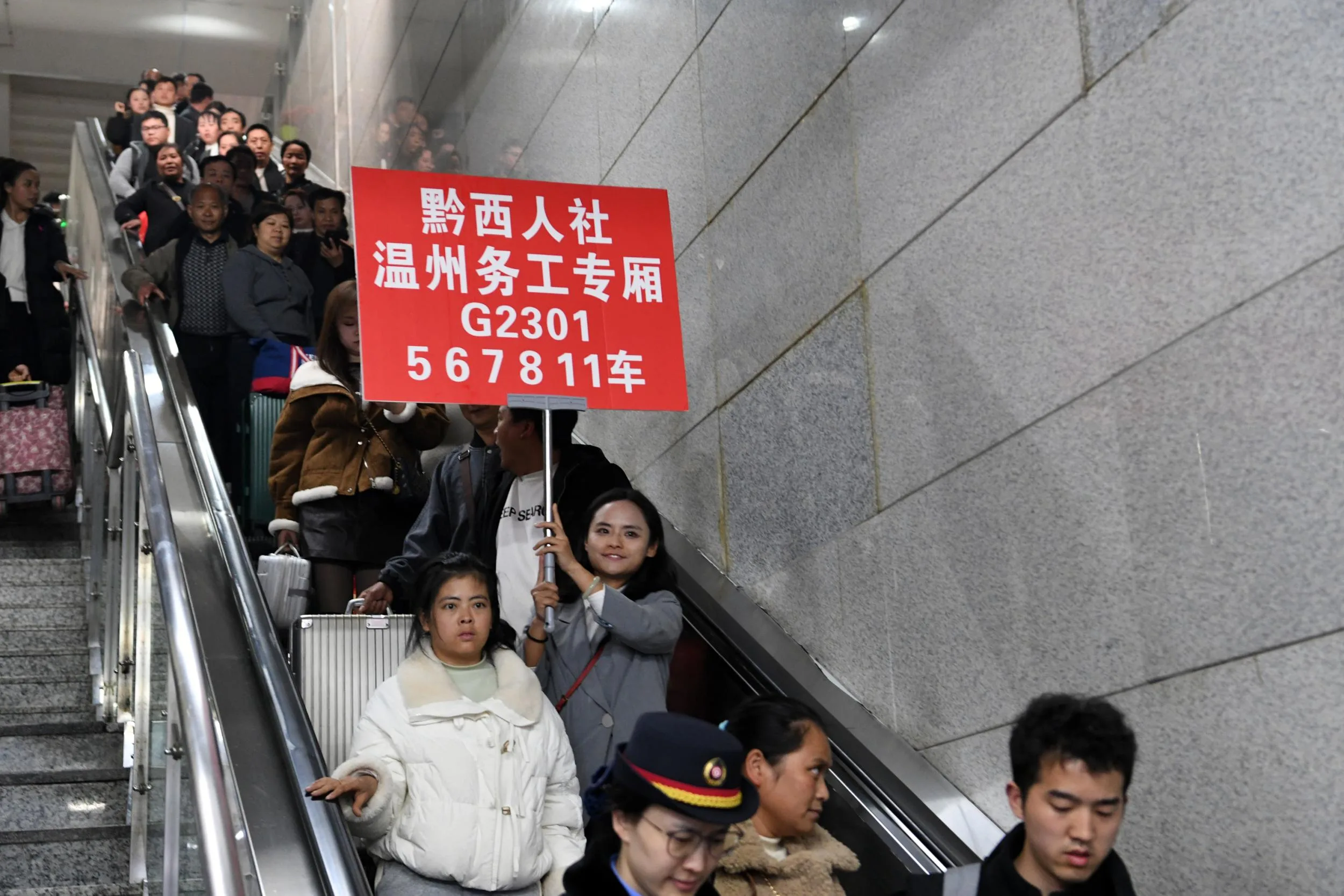 温州网讯 2月24日17点58分,载着贵州毕节市黔西市220名来温返岗人员的G2301准时驶进铁路温州南站。温州市人社局联合温州市零工市场的工作人员早已等候接站点,带着诚意与服务迎接远道而来的黔西老乡。