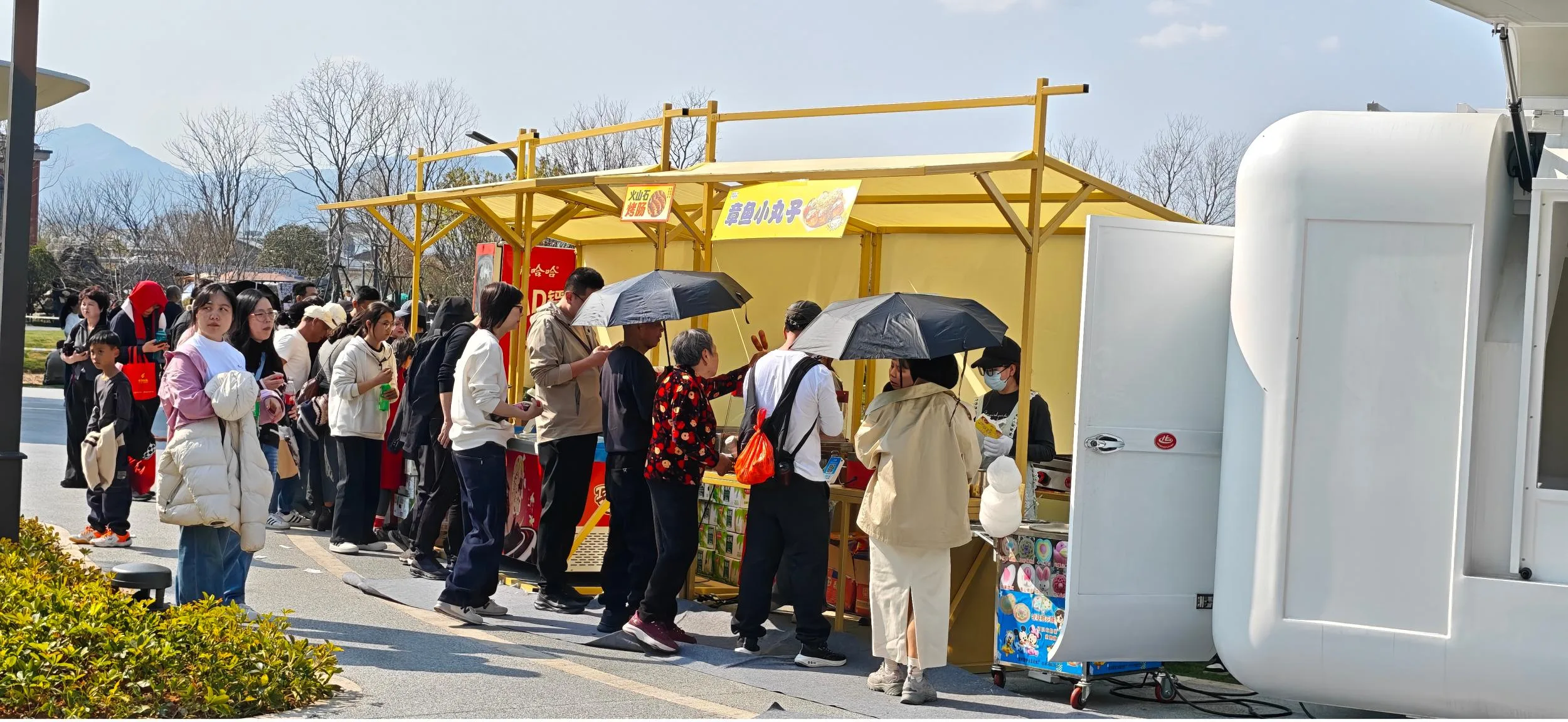 运营保障方面,除了三溪会市、园博工坊和美食广场外,园内布局了27处固定餐车、后备箱餐车以及售卖点,满足游客即时消费需求;26辆接驳车穿梭往来,尽力疏通人流。游客服务端,日均60名游服人员、40多名城发志愿者,分布14个关键点位轮岗值守,提供问询导览、走失寻人、失物招领、物品租赁等服务。物业服务方面,日均300多名保安保洁人员奋战在设施运维、秩序维护和环境保洁的第一线,守护园区平安洁净。