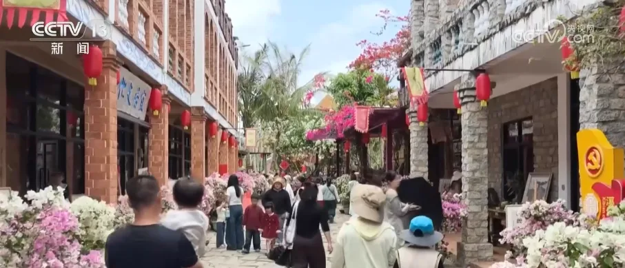 赏花之余,游客还可以走进书铺看书休憩,也能移步小街,品尝万宁小吃,或在咖啡厅喝一杯兴隆咖啡,感受春日的惬意。近年来,联星村依托花卉产业优势,融合本土文化,推动三角梅产业由单一培育向“花卉+旅游+文化”融合转型,不仅丰富了游客的体验维度,更让美丽风景转化为“美丽经济”为乡村振兴注入活力。