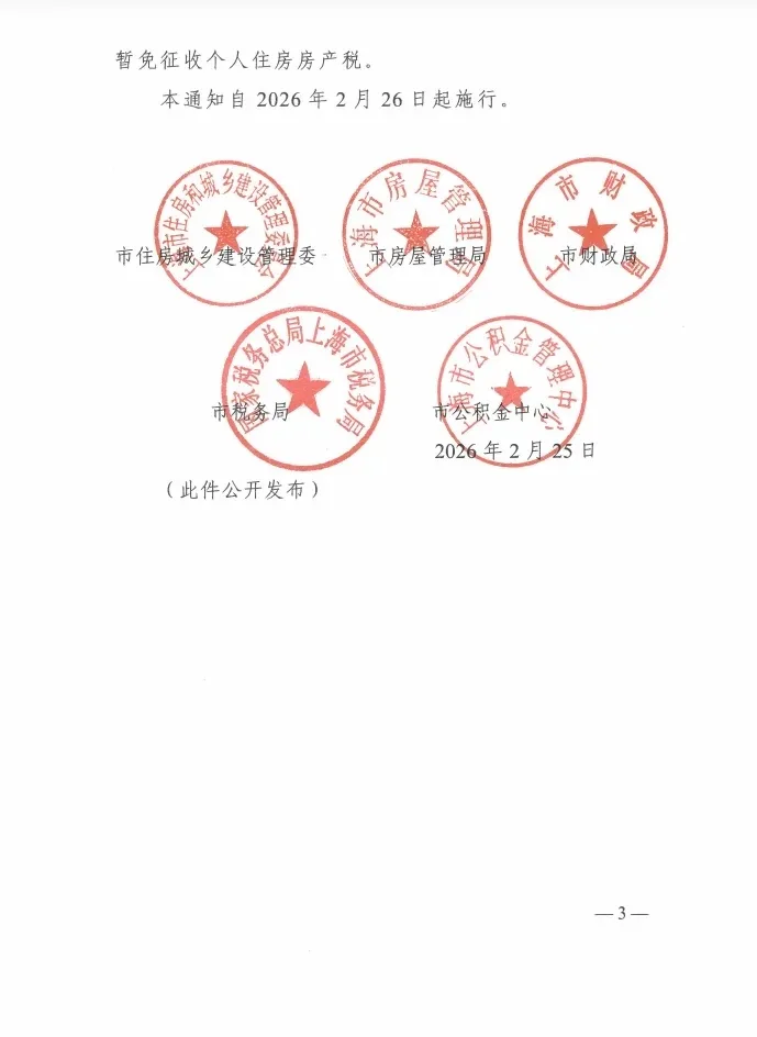 为更好满足居民刚性和改善性住房需求,促进房地产市场平稳健康发展,2月25日,市住房城乡建设管理委、市房屋管理局、市财政局、市税务局、市公积金管理中心等五部门联合印发《关于进一步优化调整本市房地产政策的通知》(以下简称《通知》),自2026年2月26日起施行。