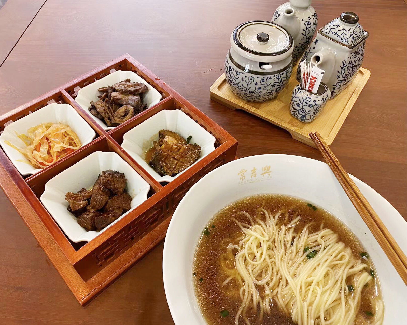 罗马常吉兴面馆全面继承常熟老字号常吉兴面馆风格,汤以“鲜”字当头,一锅熬制了12小时的厚汤集合大骨,火腿,鸡等食材,经过文火慢吊最终成就一碗鲜香浓郁,清而不浑的面汤。