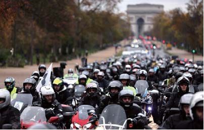 11月27日,数百名摩托车司机驾车在巴黎市中心和最高行政法院附近列队行进示威,抗议后者最近做出的强制年检裁定。