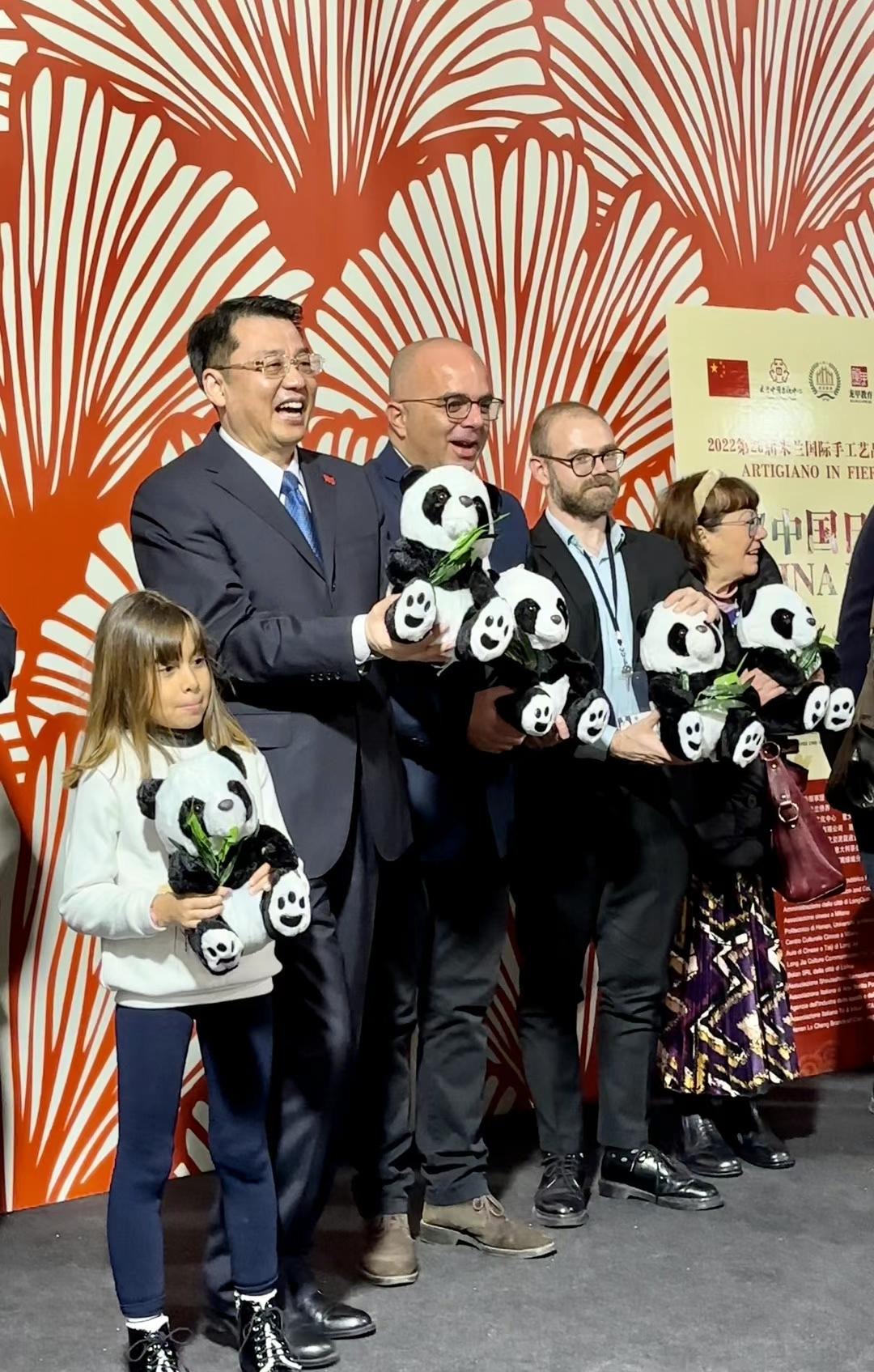 12月8日,正在米兰会展中心举行的2022国际手工艺品博览会迎来了“中国日”,中国驻米兰总领事刘侃、博览会主席安东尼奥等出席活动,并为“中国日”开幕剪彩。