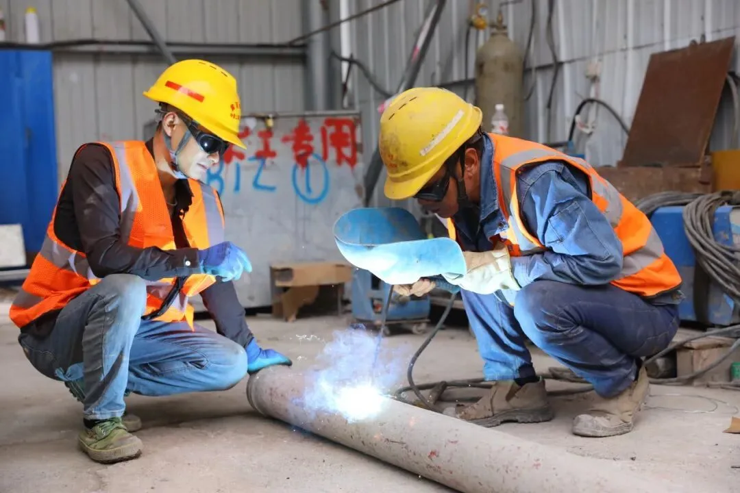 ▲周仲补和工友学习电焊。