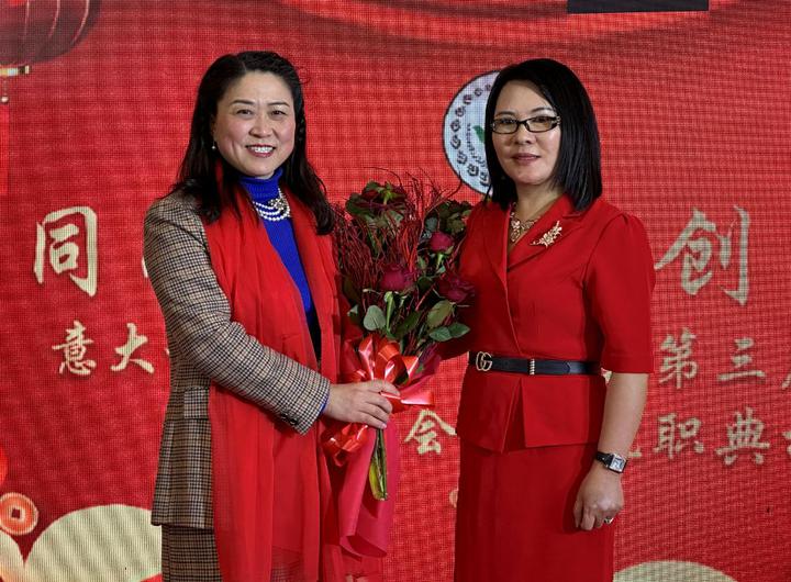 本人承蒙大家的厚爱,荣幸被推选连任意大利(中国)侨商会第四届会长,并顺利地举行就职庆典大会。身感荣幸的同时,更觉责任的重大,我将一如既往的秉承创会宗旨、做好中意双方沟通联络人,搭建中意友谊的桥梁积极响应国家“一带一路”的倡议精神,为祖国统一大业贡献应有的力量!