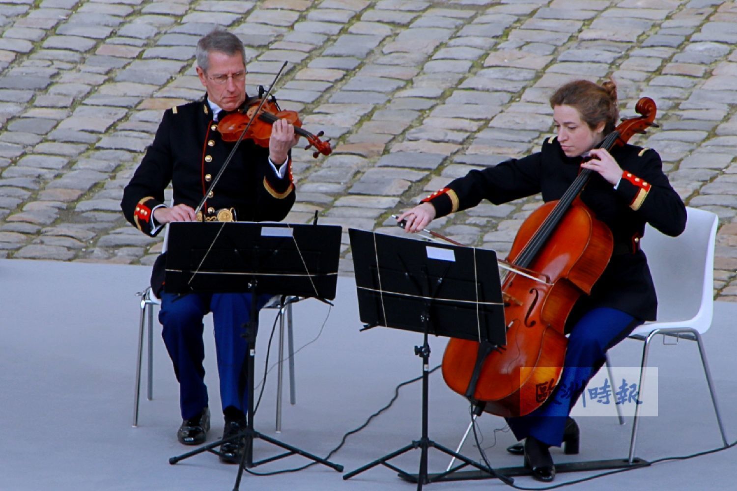 当天上午11时,马克龙首先向巴黎荣军院广场上为恐怖主义受害者而设立的“倾听”纪念像敬献了鲜花,并默哀致意。