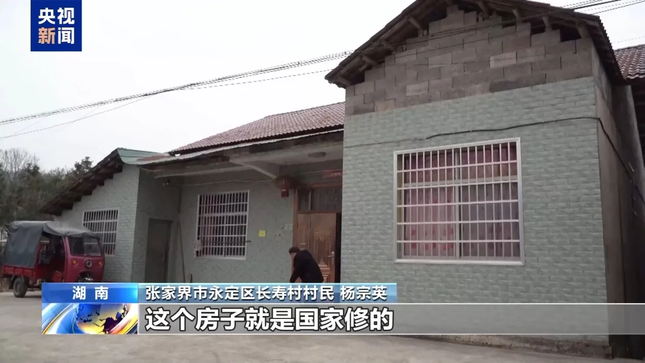 张家界市永定区长寿村村民 杨宗英:这个房子是国家修的,我种植莓茶,补助加起来一年有七八万元,政策照顾了我们监测户。