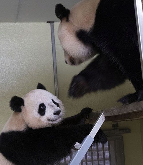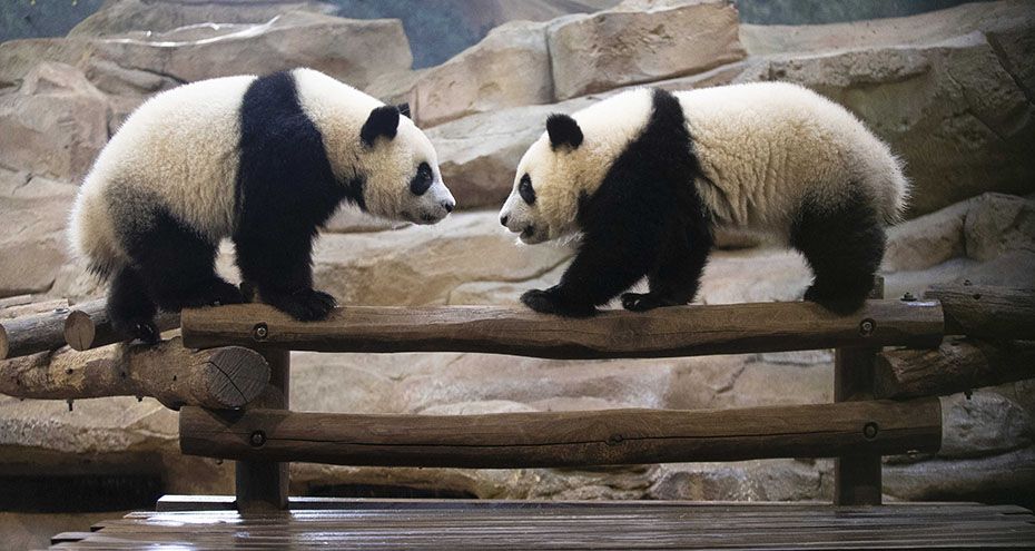 资料图为2021年3月拍摄的“欢欢”和“圆仔”照片。