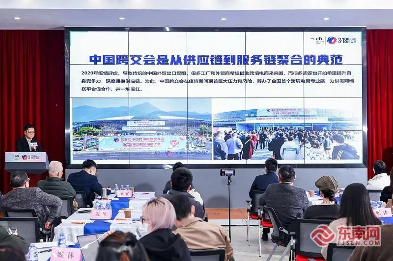 东南网2月28日讯(本网记者 卢金福 文/图)今日下午,第六届中国跨境电商交易会(以下简称“跨交会”)在福州召开媒体通气会,全方位解读行业新趋势,披露展会创新亮点。记者获悉,第六届跨交会由商务部外贸发展事务局、福建省进出口商会、福州跨交荟展览有限公司联合主办,将于3月18日-20日在福州举办,将汇聚全球千企万品,集“一展一会一指数”于一体,为马年新春的跨境电商行业搭建首个大舞台。