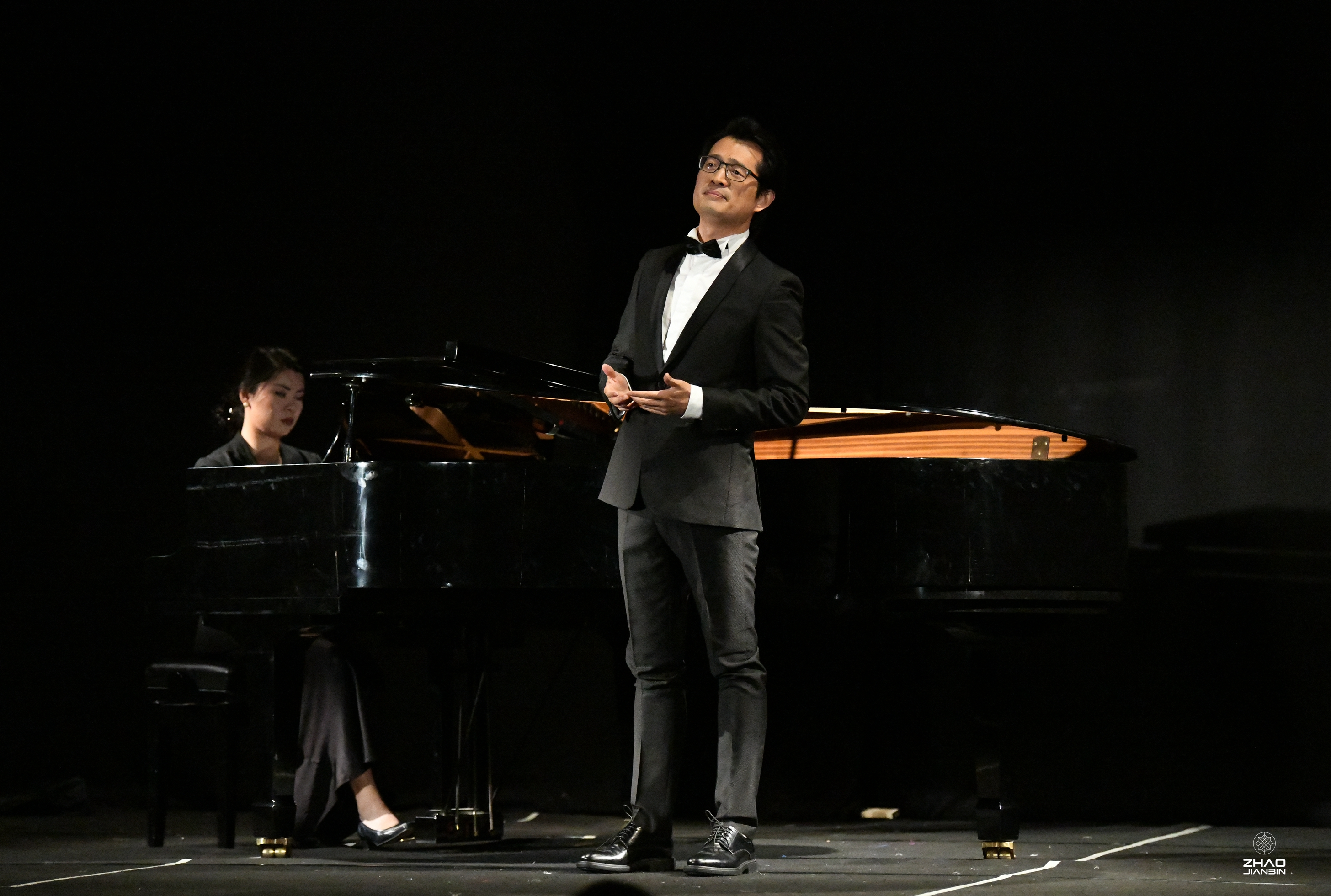 接下来,周艺以男高音演唱者和艺术策展人的双重身份登台,为观众献上了三首歌曲《送别》《绒花》和《越人歌》。他的演唱搭配来自意大利诺瓦拉音乐学院声乐歌剧系艺术指导翁一睿的精彩钢琴伴奏。