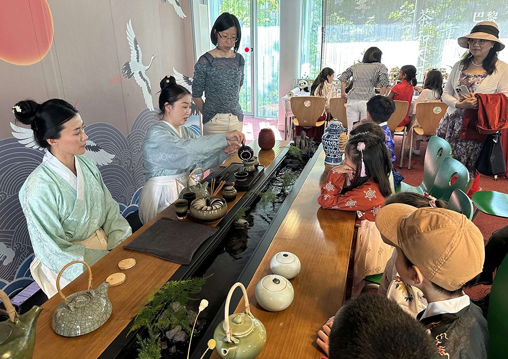 在茶艺体验区,茶艺师通过寓教于乐的方式,向小朋友们展示了中国传统的饮茶文化和风俗习惯。