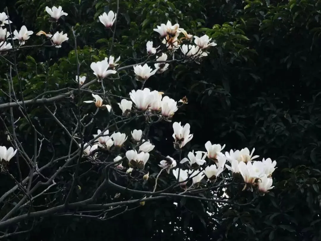 玉兰缀满街巷枝头,或盛放吐蕊,或含苞待放,素净雅致,与山城烟火相融,是初春最易邂逅的美好。