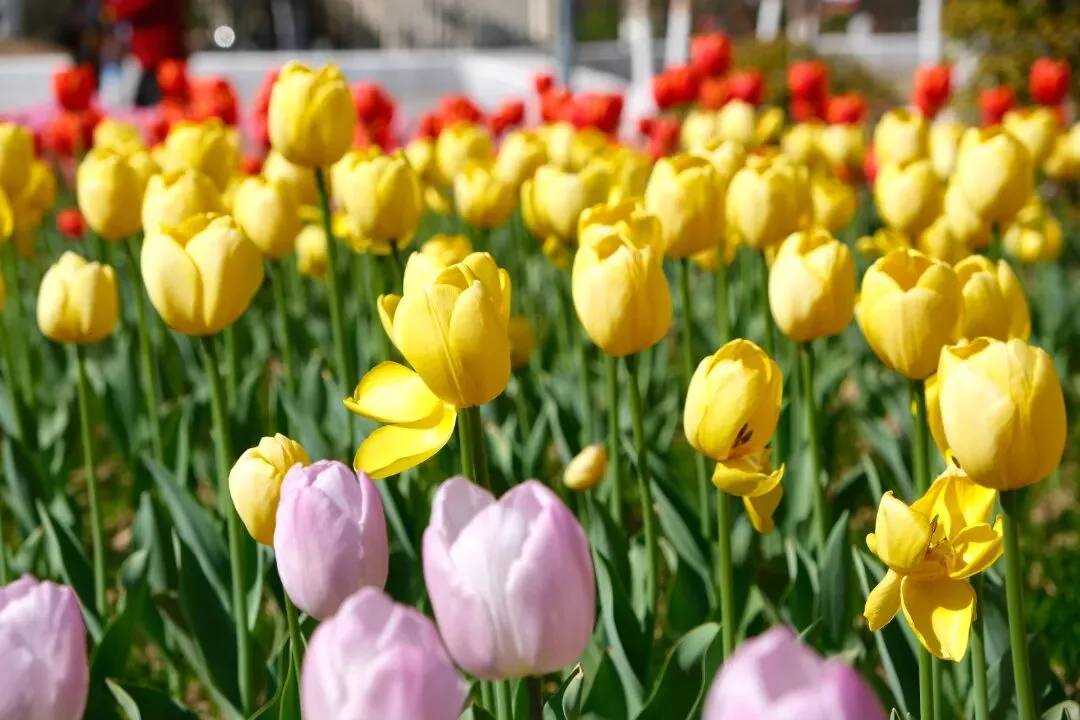 汤姆王朝、阳光、头等舱、糖果王子等多个品种的1.4万株郁金香竞相绽放,为市民游客送上春日里的视觉盛宴。