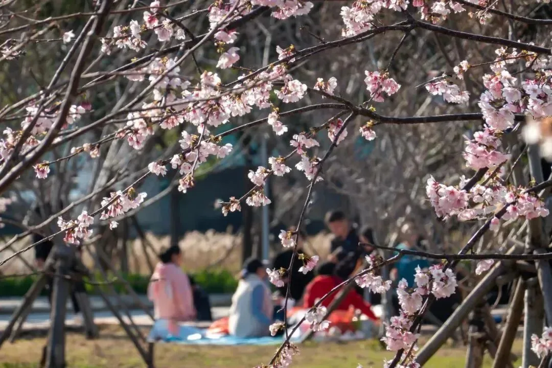 2万余株樱花陆续开放,其中,8000多株早樱红粉佳人樱已满园绽放,6000余株早樱和牡丹樱也进入了盛花期。