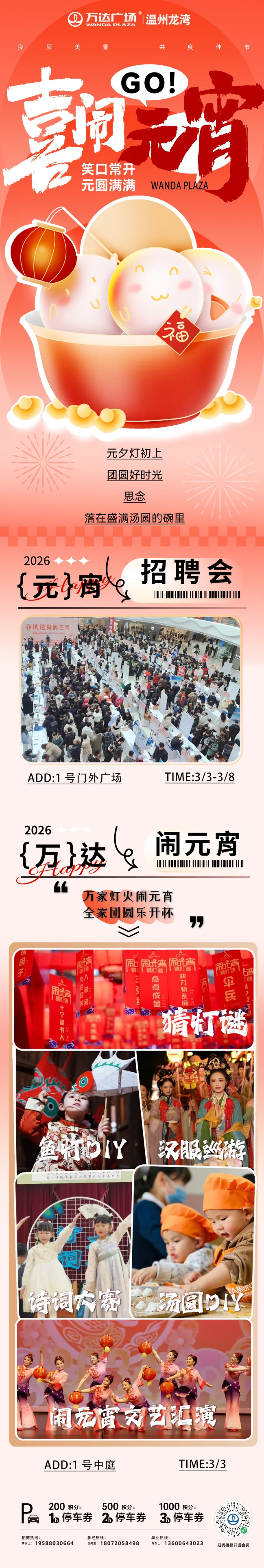 元夕灯初上,团圆好时光,龙湾万达邀你喜闹元宵,猜灯谜、鱼灯DIY、汉服巡游、诗词大赛、汤圆DIY、文艺汇演,超多精彩活动等你来!