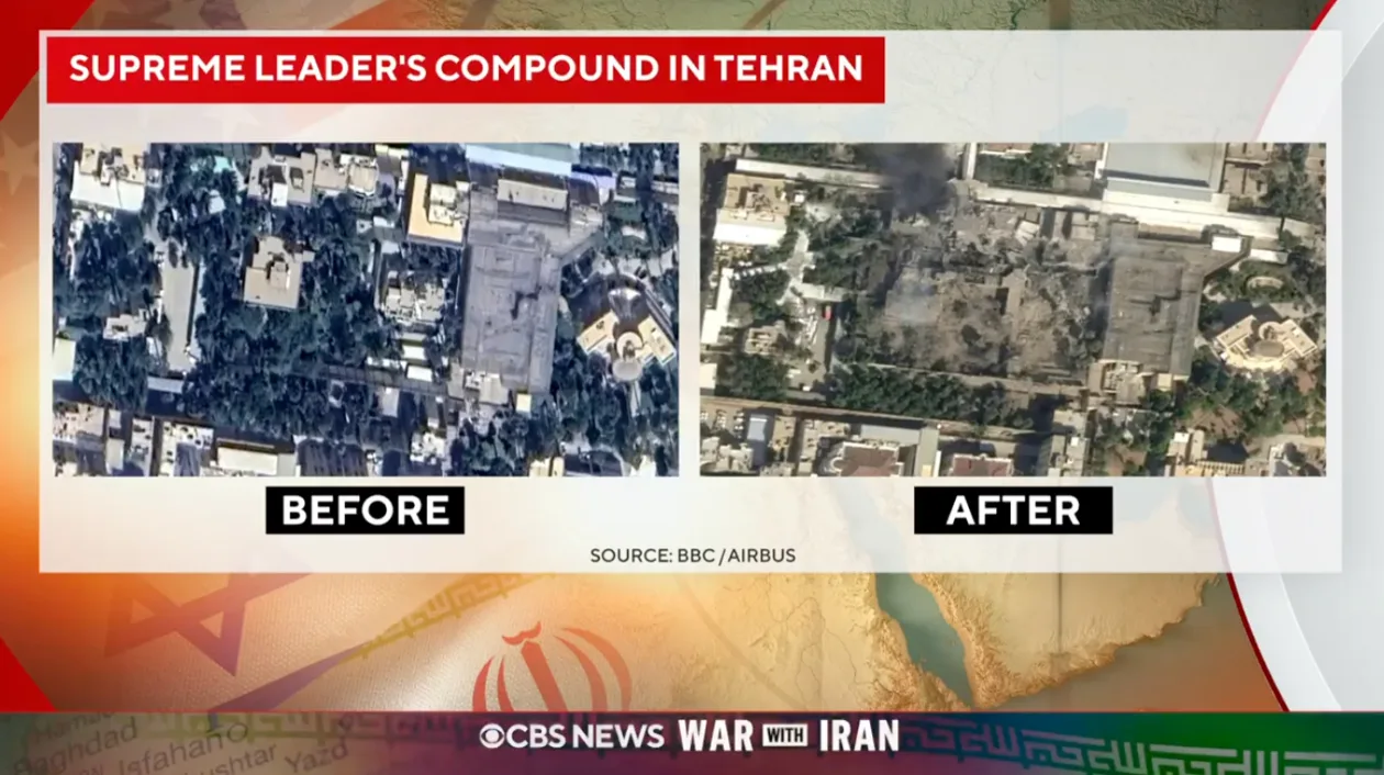 【环球网报道 记者 李梓瑜】美国哥伦比亚广播公司(CBS)在最新报道中发布了一组卫星图,显示已故伊朗最高领袖哈梅内伊位于该国首都德黑兰的住所在2月28日早晨遭美国和以色列袭击后,呈现出的前后对比景象。