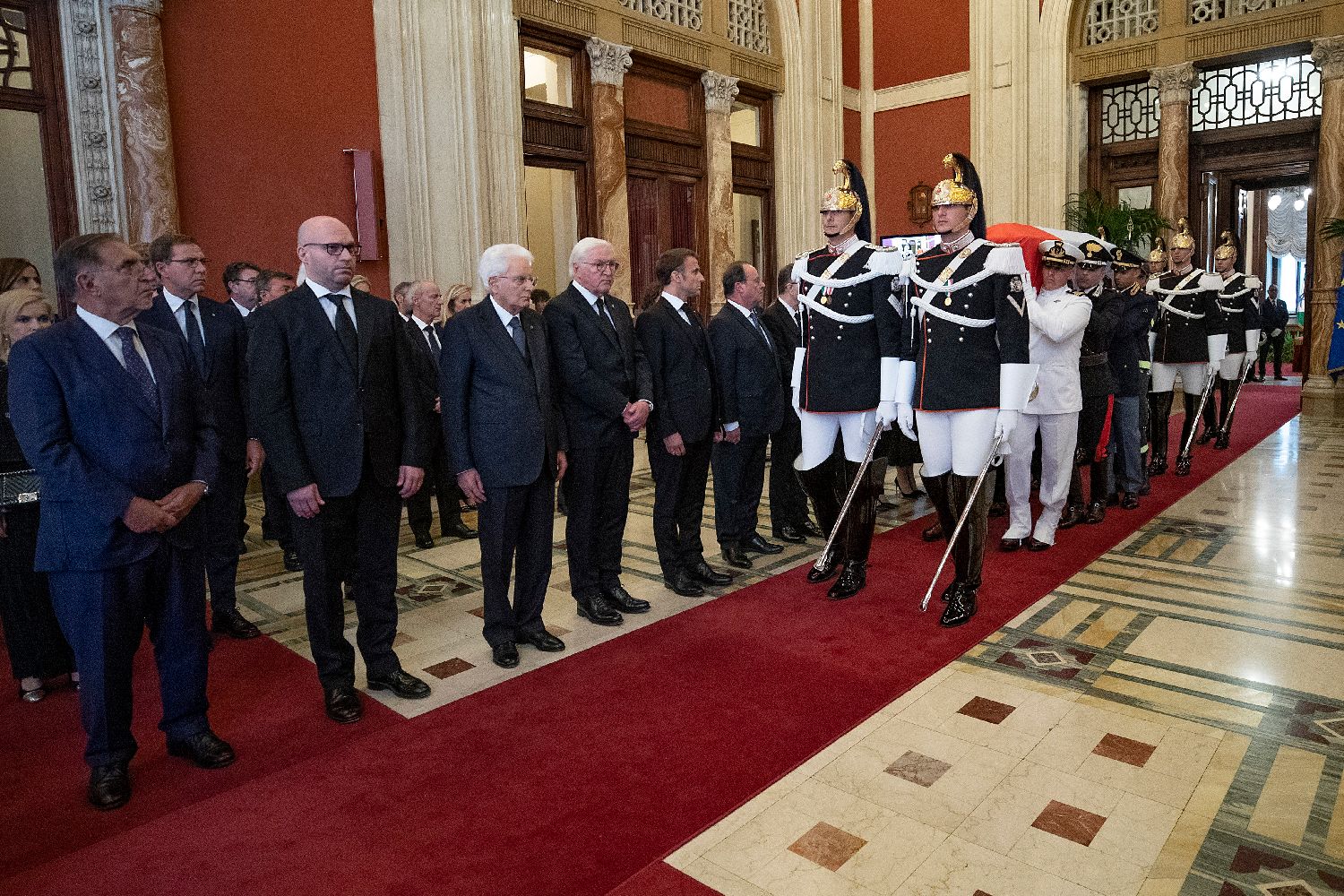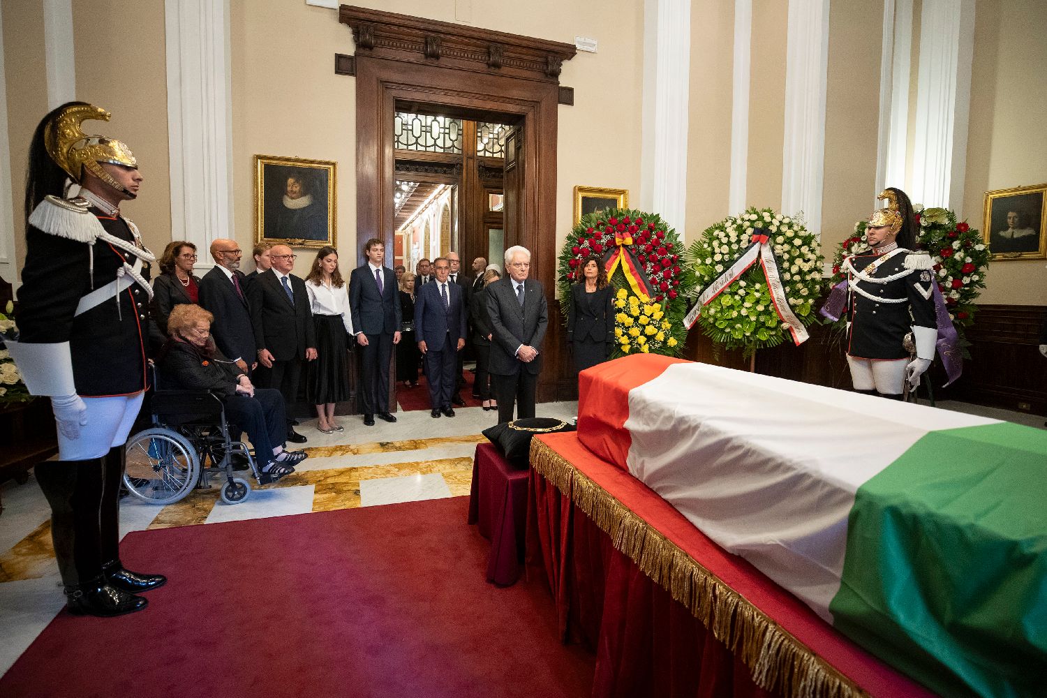 9月26日,在意大利罗马,意大利总统马塔雷拉站在意大利前总统乔治·纳波利塔诺的灵柩前。
