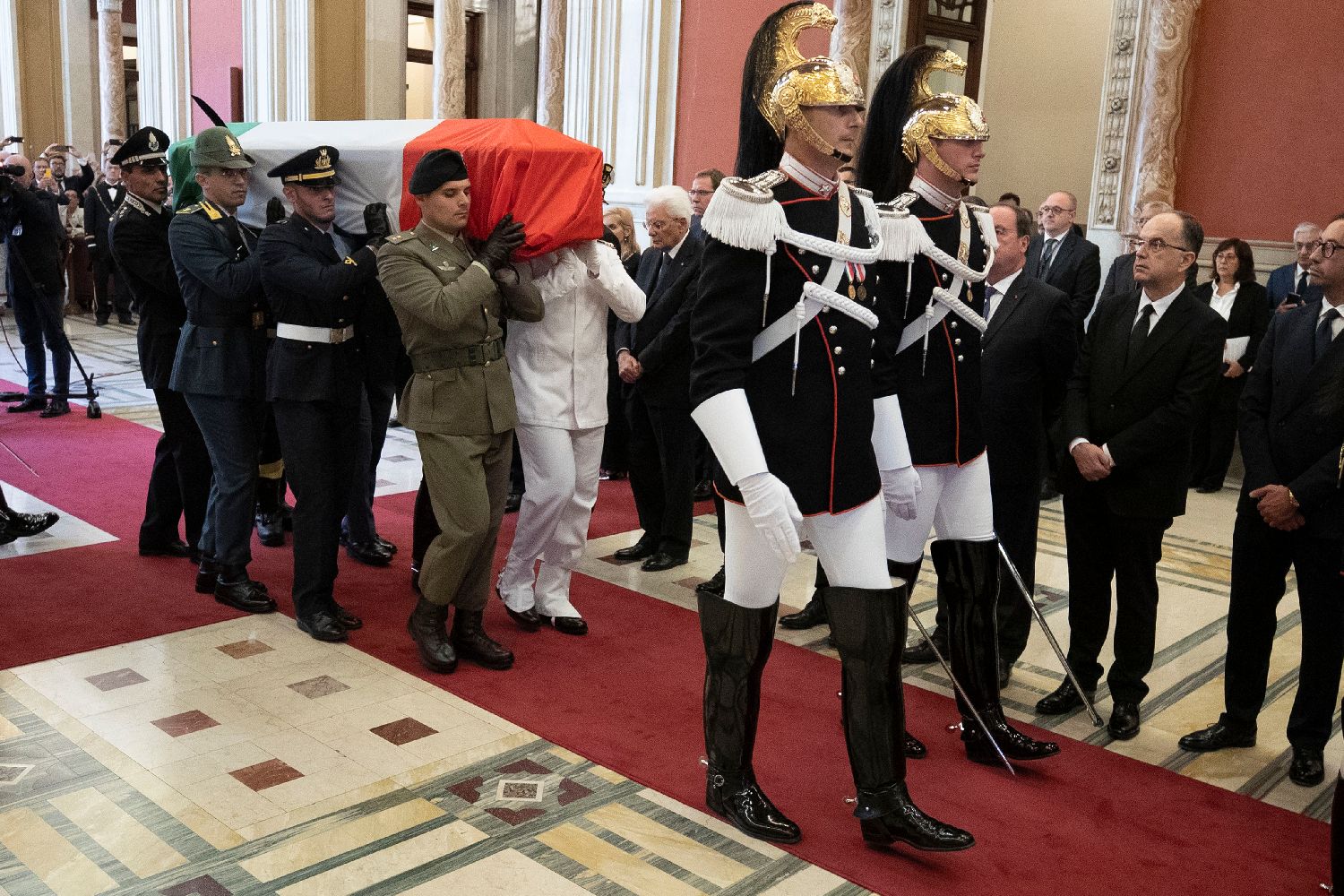 9月26日,人们在意大利罗马举行的国葬仪式上运送意大利前总统乔治·纳波利塔诺的灵柩。(图片来源:本文图片均自新华社)