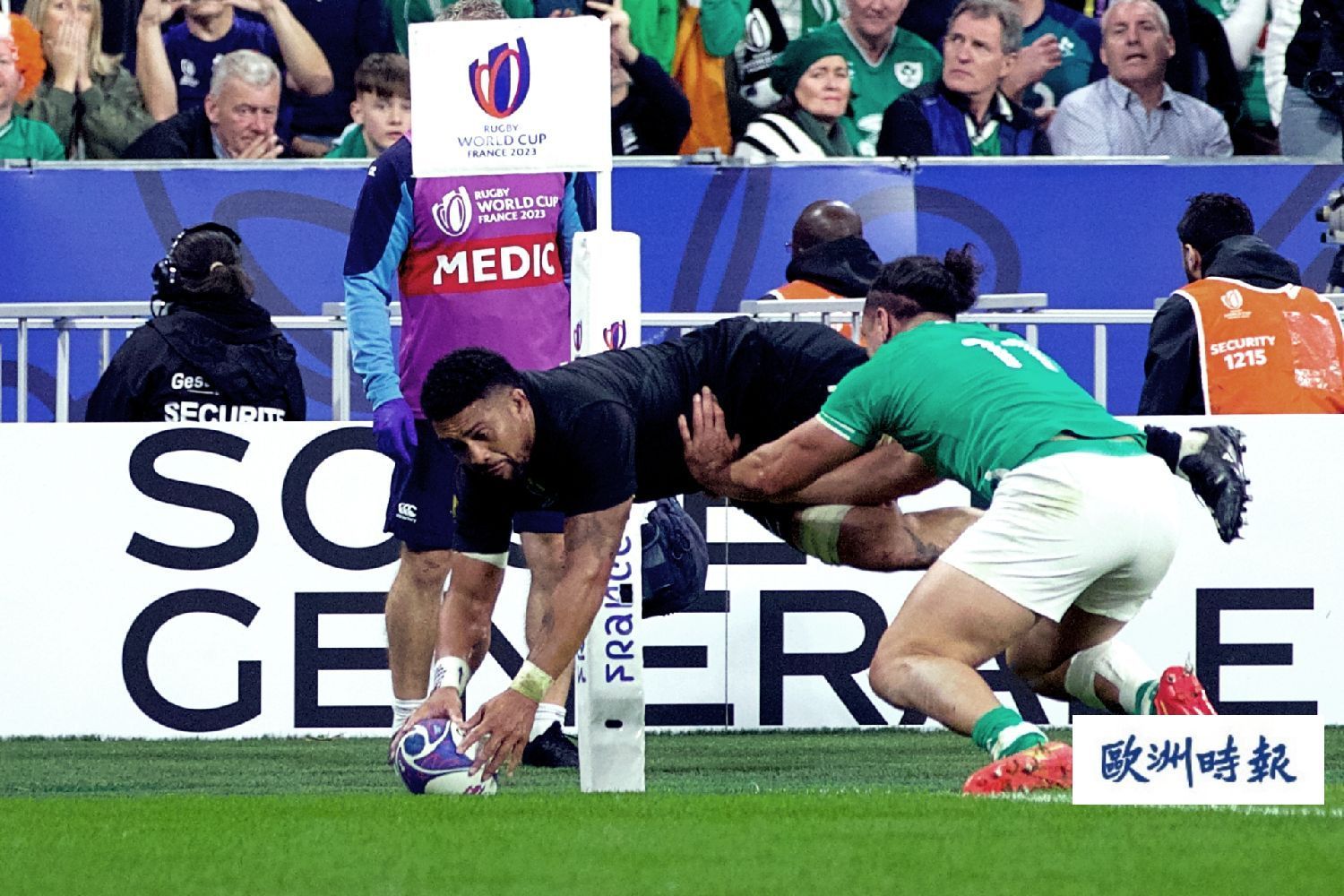 您的位置 > 首页 > 法国 2023法国橄榄球世界杯四强争夺 爱尔兰24比28不敌新西兰无缘四强 来源: 欧洲时报 | 2023-10-14 | 👁:4216 (欧洲时报记者欧文报道)法国当地时间10月14日,2023法国橄榄球世界杯4强争夺赛在巴黎北郊圣德尼的法兰西国家体育场进行了一场比赛,爱尔兰对阵新西兰。 经过80分钟的激烈角逐,爱尔兰队以24比28败北。新西兰取得胜利,挺进4强。 (编辑:欧文) 标签: 暂无标签 上一篇 米兰Gallarate青田老板娘的酒吧中出600万欧元刮刮乐,中奖者身份成谜! ... ❤️ 赞一个 (0) 🔗 分享 用户评论 (0) 暂无评论,快来抢沙发吧!首评可提升互动曝光。 请 登录 后参与互动