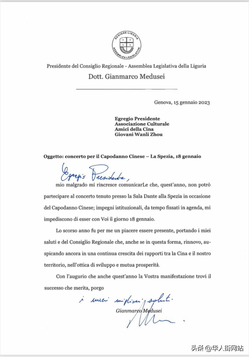 出席音乐会现场的中意嘉宾,有中国驻佛罗伦萨总领馆管仲奇代总领事和周宇丰领事、拉斯佩齐亚省长兼市长佩拉齐尼的代表兼安全局局长桂里、拉斯佩齐亚副省督普拉拉、前意⼤利国会众议院议员加利亚迪、拉斯佩齐亚市议会主席皮斯科波、拉斯佩齐亚省议会议员兼拉市议会副主席克罗瓦拉、拉斯佩齐亚省议会议员塔拉布吉、拉斯佩齐亚市青年政策局局长卡莉、拉斯佩齐亚省中小企业企业联合会主席菲戈利、拉斯佩齐亚普契尼音乐学院校长布鲁诺、拉斯佩齐亚普契尼音乐学院前主席塞尔吉、中国之友文化协会主席周万里、意大利西海岸华商总会会长蔡志敏、副秘书长杨小华、副会长王永真以及意大利友人和普契尼音乐学院的中国留学生们!