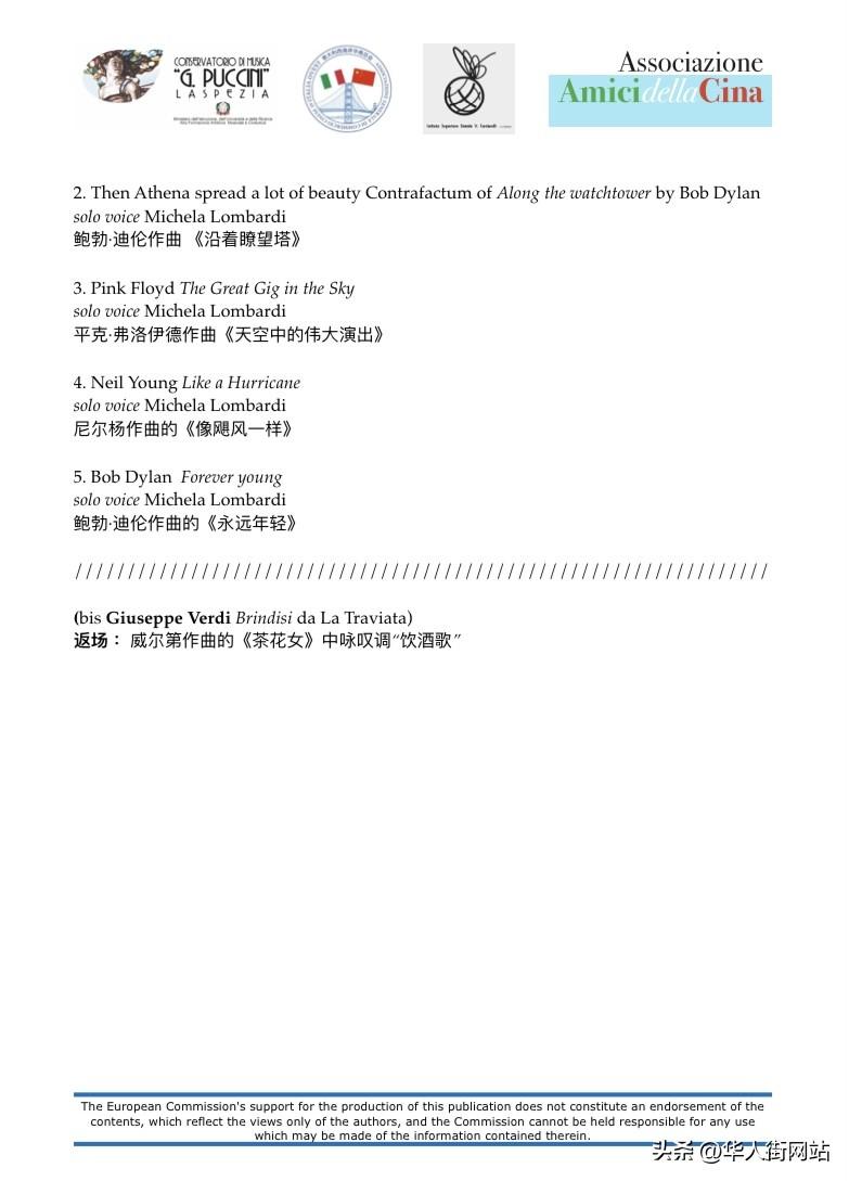 本次音乐会成功举办也感谢热那亚学生学者联谊会的协办;感谢合作媒体意大利《华人街》;感谢拉斯佩齐亚知名品牌Mediterraneo和Lunae酒庄及今日食品携手王老吉的支持和赞助!