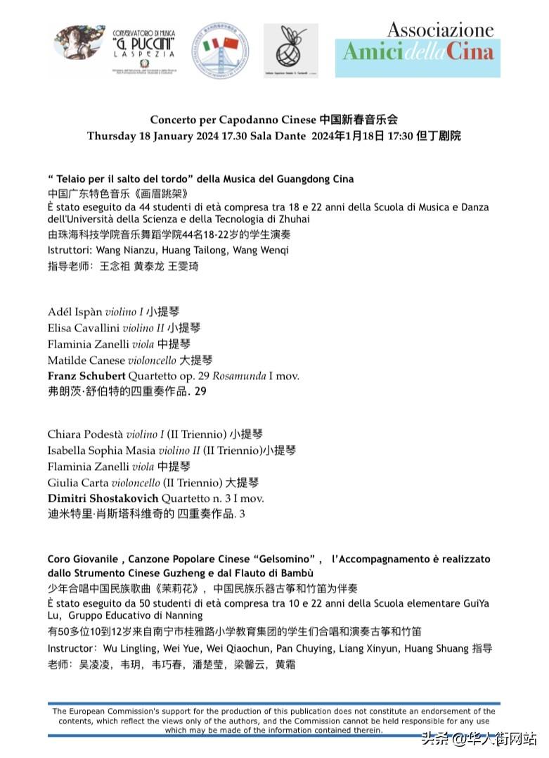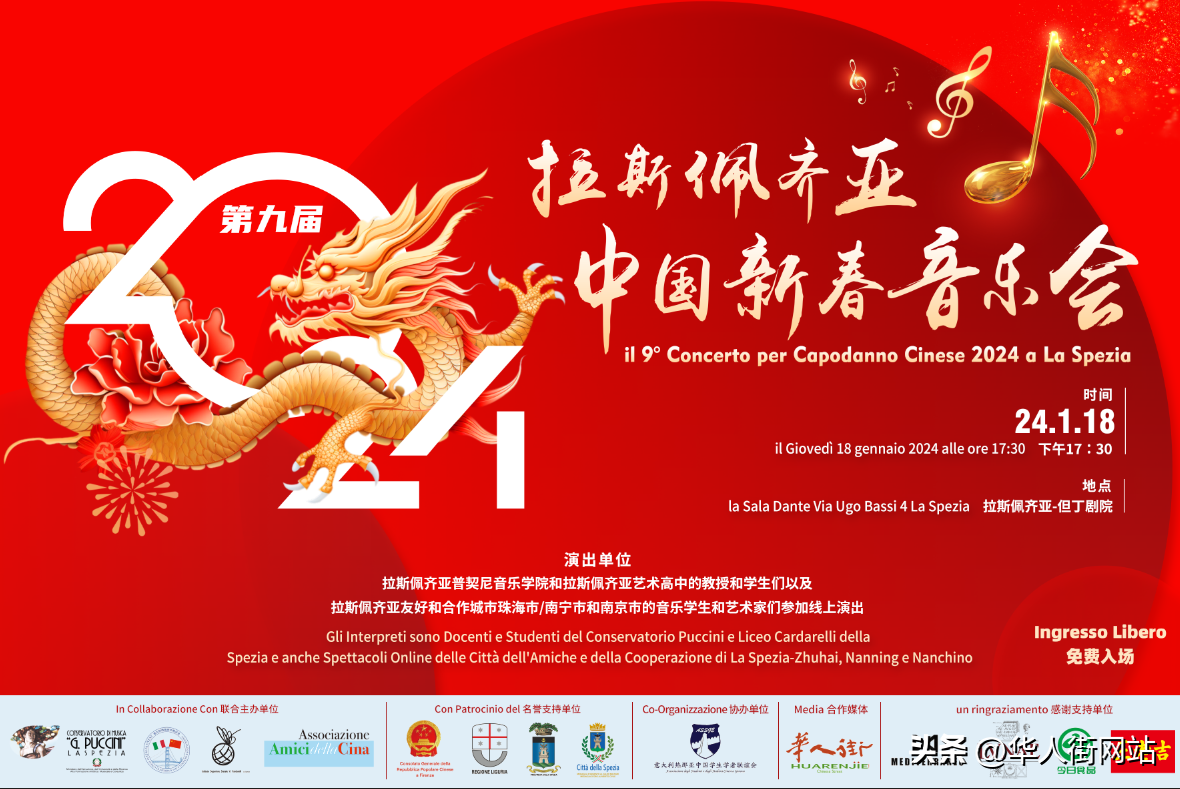 2024年1月18日,第九届中国新春音乐会在意大利拉斯佩齐亚成功举办,拉市友好与合作城市珠海市、南宁市和南京市音乐学生和艺术家们参加线上演出!