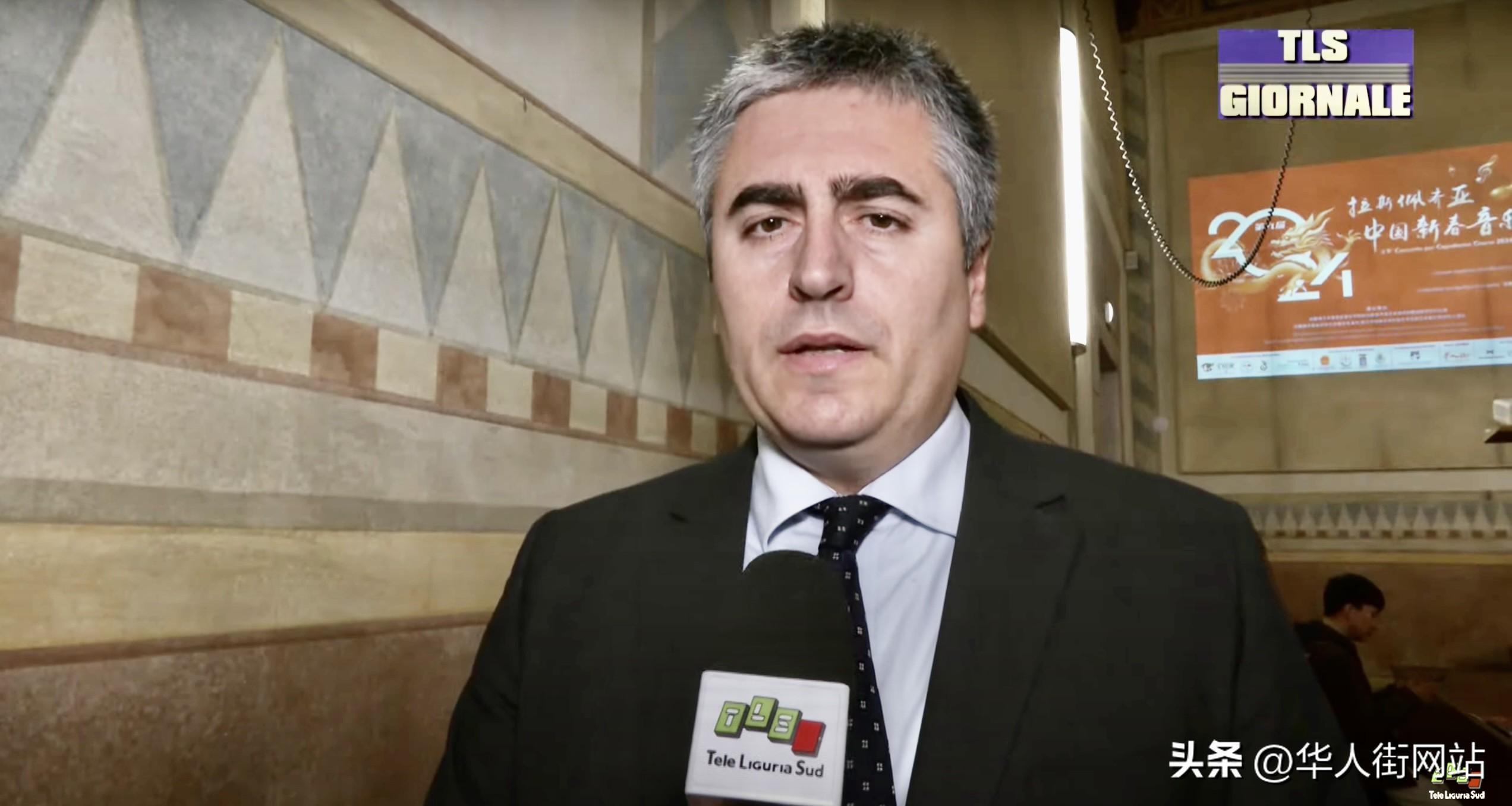 他接着说:拉斯佩齐亚市政府和中国很多城市有多领域的交流与合作,在文化方面就是其中之一,我们感谢中国之友文化协会,他们9年来不懈努力的组织的像今天一样的为庆祝中国传统佳节的音乐会,让两国的城市和人民之间有更深的认识和交流,中国新春音乐会也正成为拉斯佩齐领土上的一个重要传统活动!同时也感谢普契尼音乐学院和卡达利丽艺术高中以及中国友好合作城市珠海、南宁和南京的学生和艺术家们线上线下的共同演出!祝贺演出成功,也再次祝愿中国人龙年新春愉快!