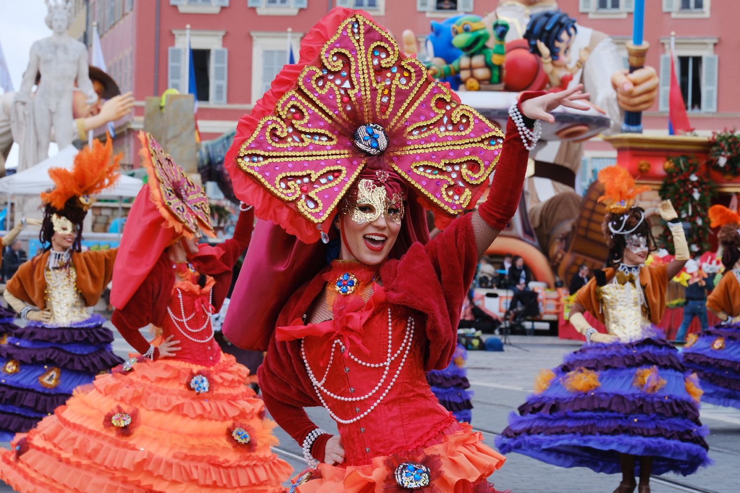 3月2日,演员在法国尼斯狂欢节上表演。