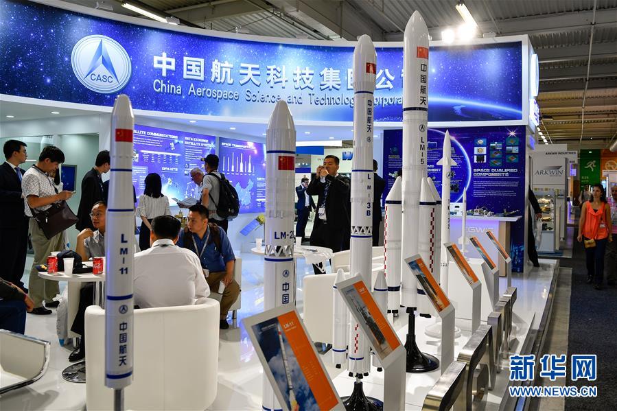 6月19日,在法国巴黎近郊的布尔歇,来宾参观中国航天科技集团公司所属中国长城工业集团有限公司展位。