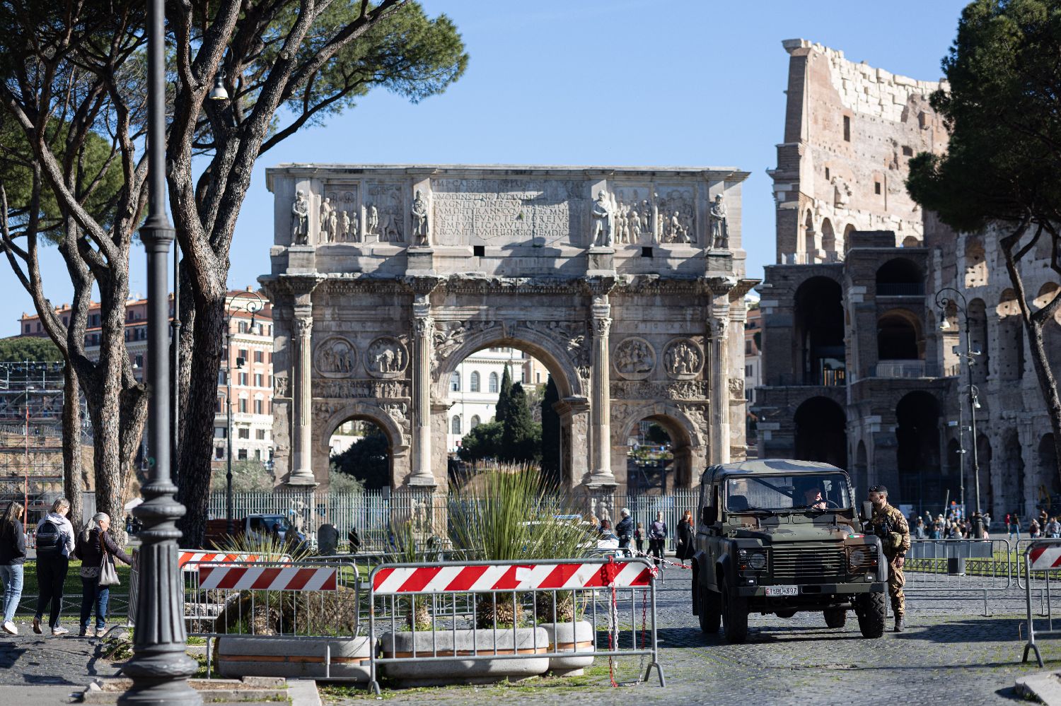 3月25日,士兵在意大利罗马君士坦丁凯旋门前执勤。
