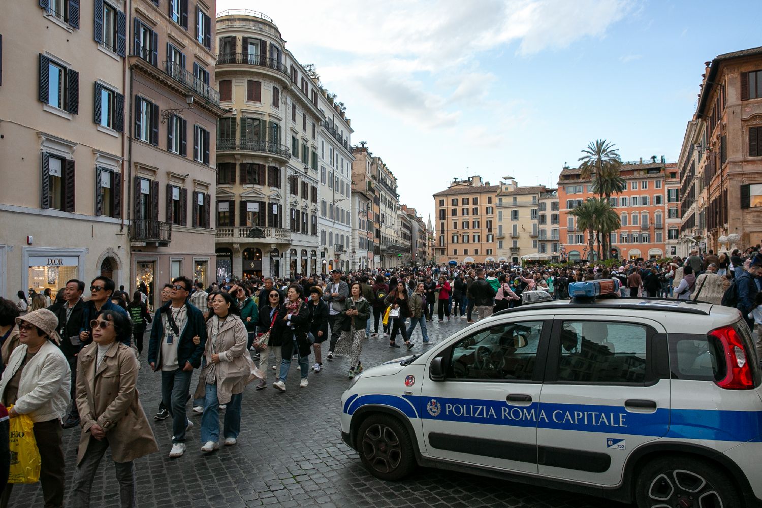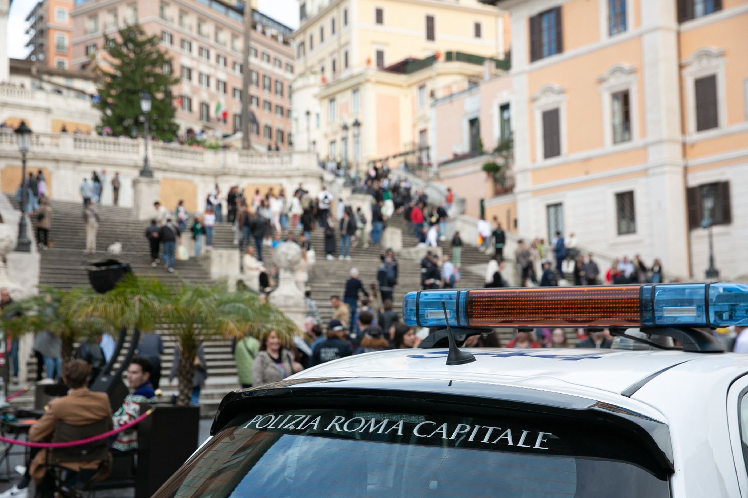 3月24日在意大利罗马西班牙广场拍摄的警车。