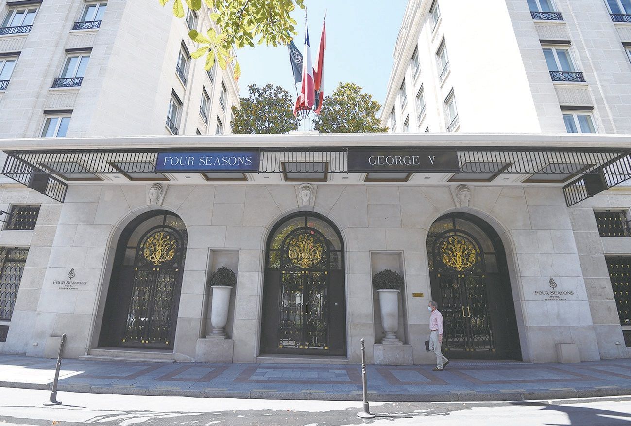 获得米其林三把钥匙、位于巴黎第八区的乔治五世四季酒店。法新社图