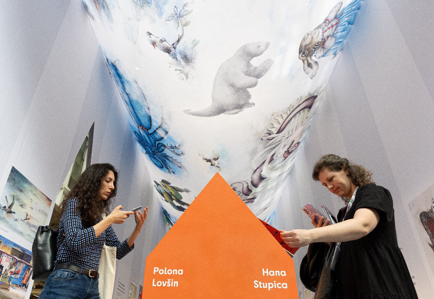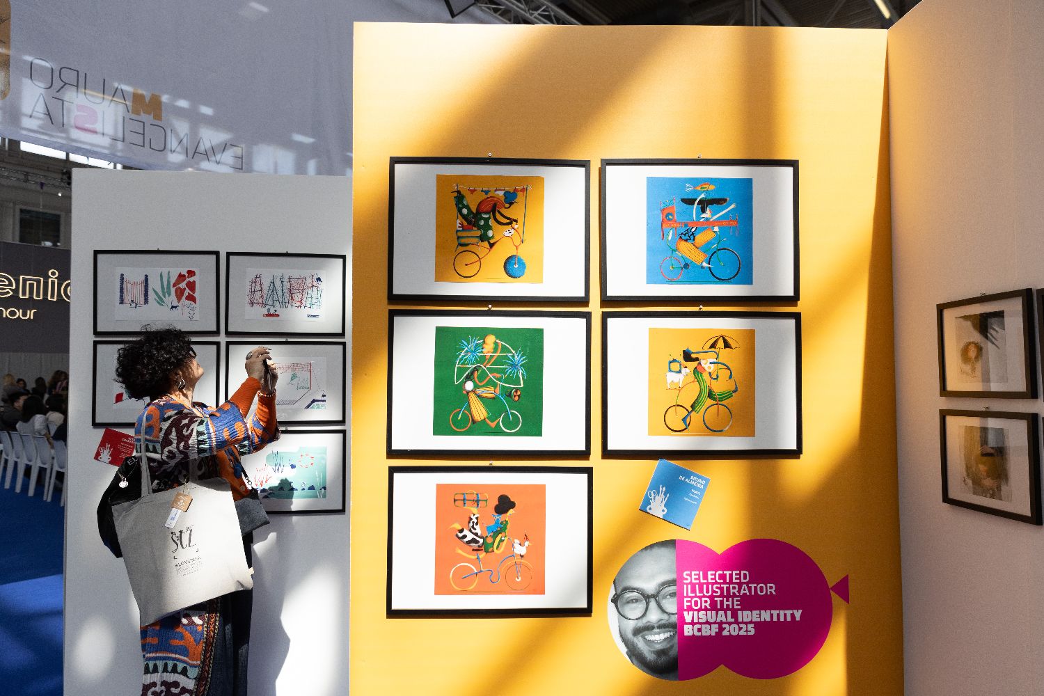 4月8日,在意大利博洛尼亚举行的第61届博洛尼亚国际童书展上,一名女子拍摄插画。